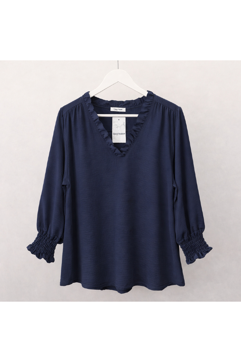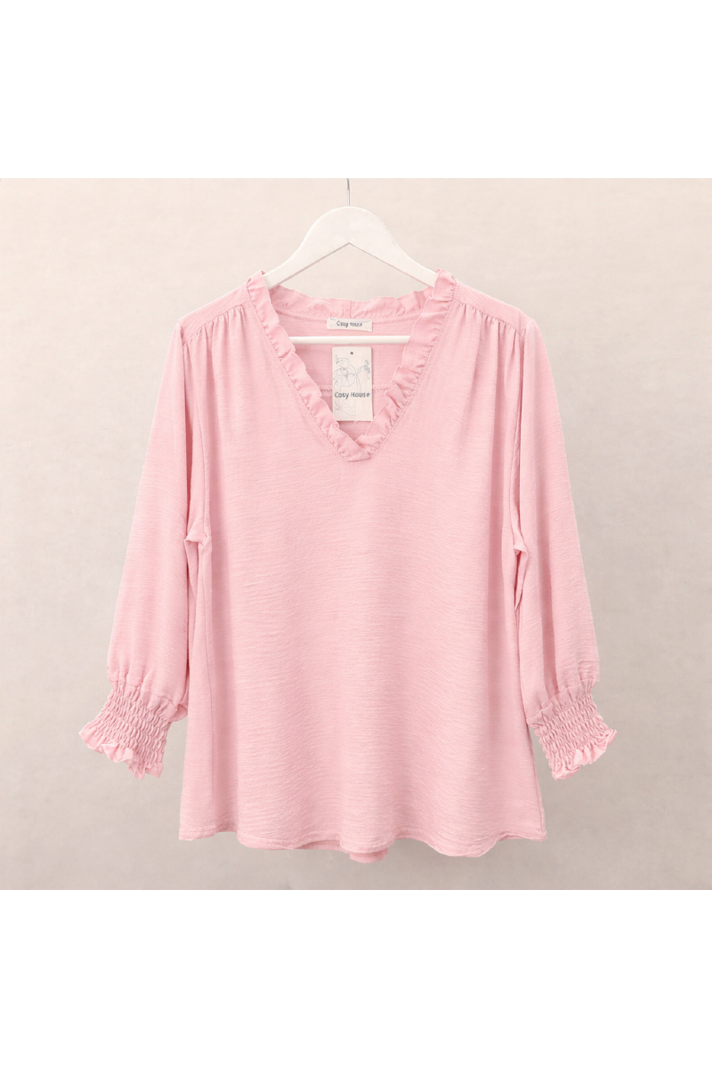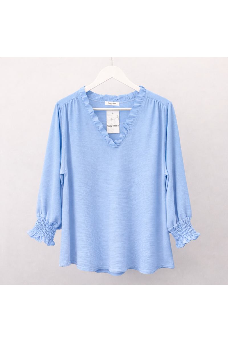 Söt v-ringad blus med volang.