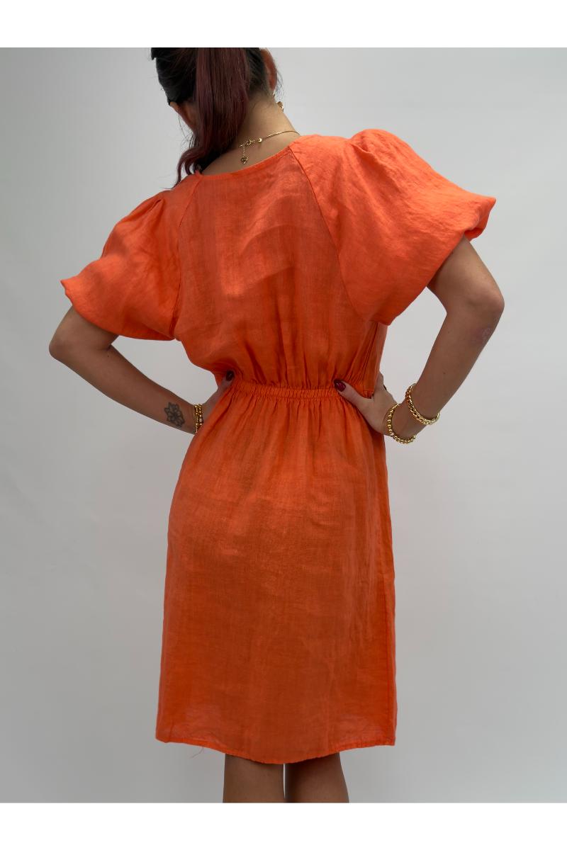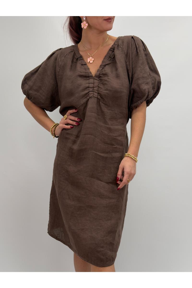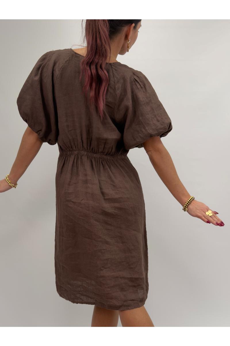 Söt linneklänning med puffärm.