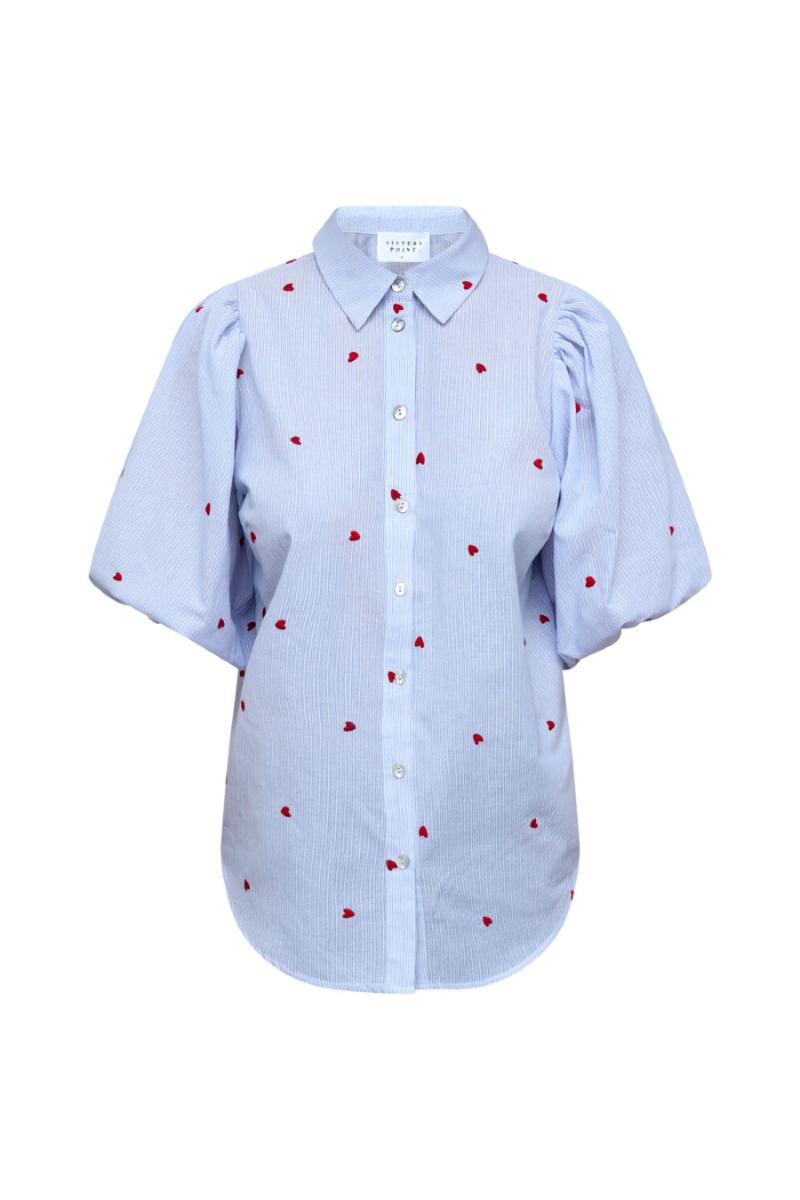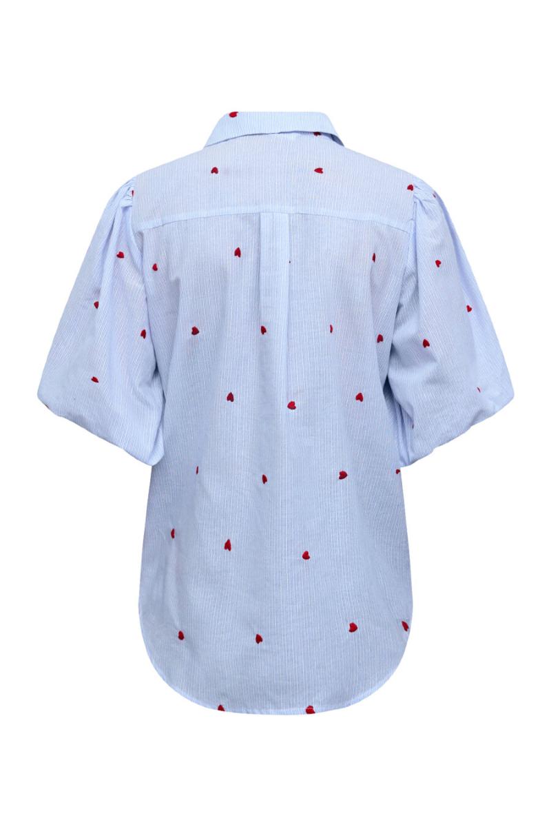 En söt randig blus med små hjärtan.